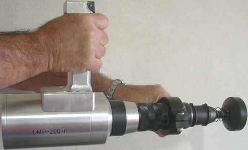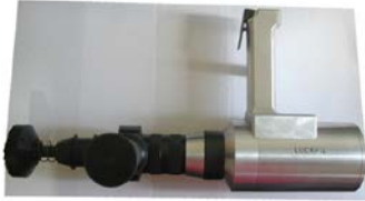 Com parte do corpo e punho em alumínio e parte em aço carbono.